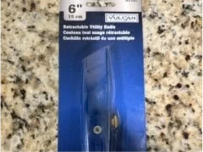 Retractable Utility Knife for cutting vinyl tiles, linoleum, carpet, plastic, rubber, cardboard, paper, and leather.