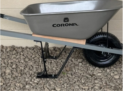 6 cu. ft. Heavy Duty Steel Wheelbarrow. Corona Season after Season, Maximum Strength and Durability. Seamless Steel Tray. Resists tipping with leg stabilizers.