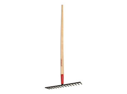 Efficiently gather and remove garden debris with ease using our durable wooden-handled garden rake, featuring a classic design and sturdy construction.