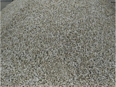 A white rock suitable for decorative lining, driveway topping, and concrete aggregate.