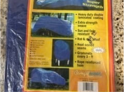 8 ft x 10 ft sun and fade resistant PolyTarp has heavy duty double laminated coating, extra strength weave, heat sealed seams, grommets every 3 feet, and rope reinforced hem.