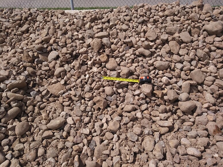 Bull Rock is an earth tone river rock (brown, white, and everything in between) that varies in size from approximately 2 inches to approximately 7 inches.