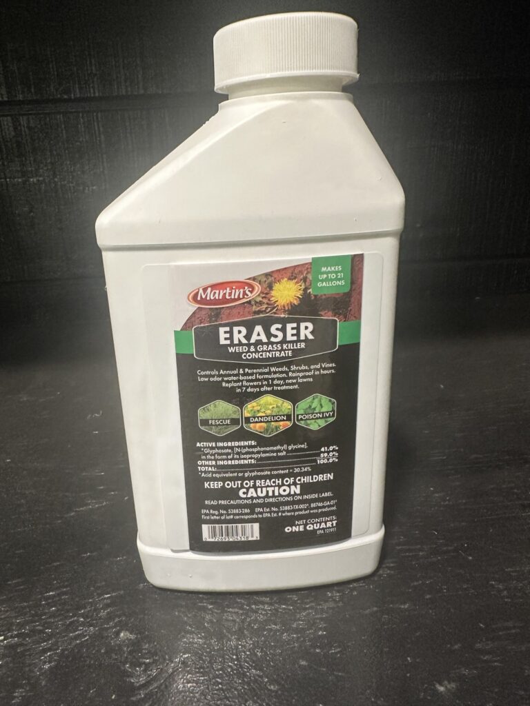1 Quart – Weed and grass killer concentrate. Controls annual and perennial weeds, shrubs, and vines. Low odor weed-based formulation. Rainproof in hours.