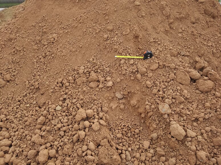 Roughly 60% clay and 40% Bank Sand for backfill.