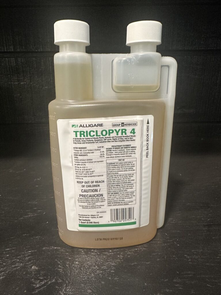 1 Quart – A herbicide for control of woody plants, animals, and perennial broadleaf woods in forests, grass pastures, rangeland, CRP acres, rights-of-way, and non-crop areas and ornamental turf, industrial sites and non-irrigation ditch banks.